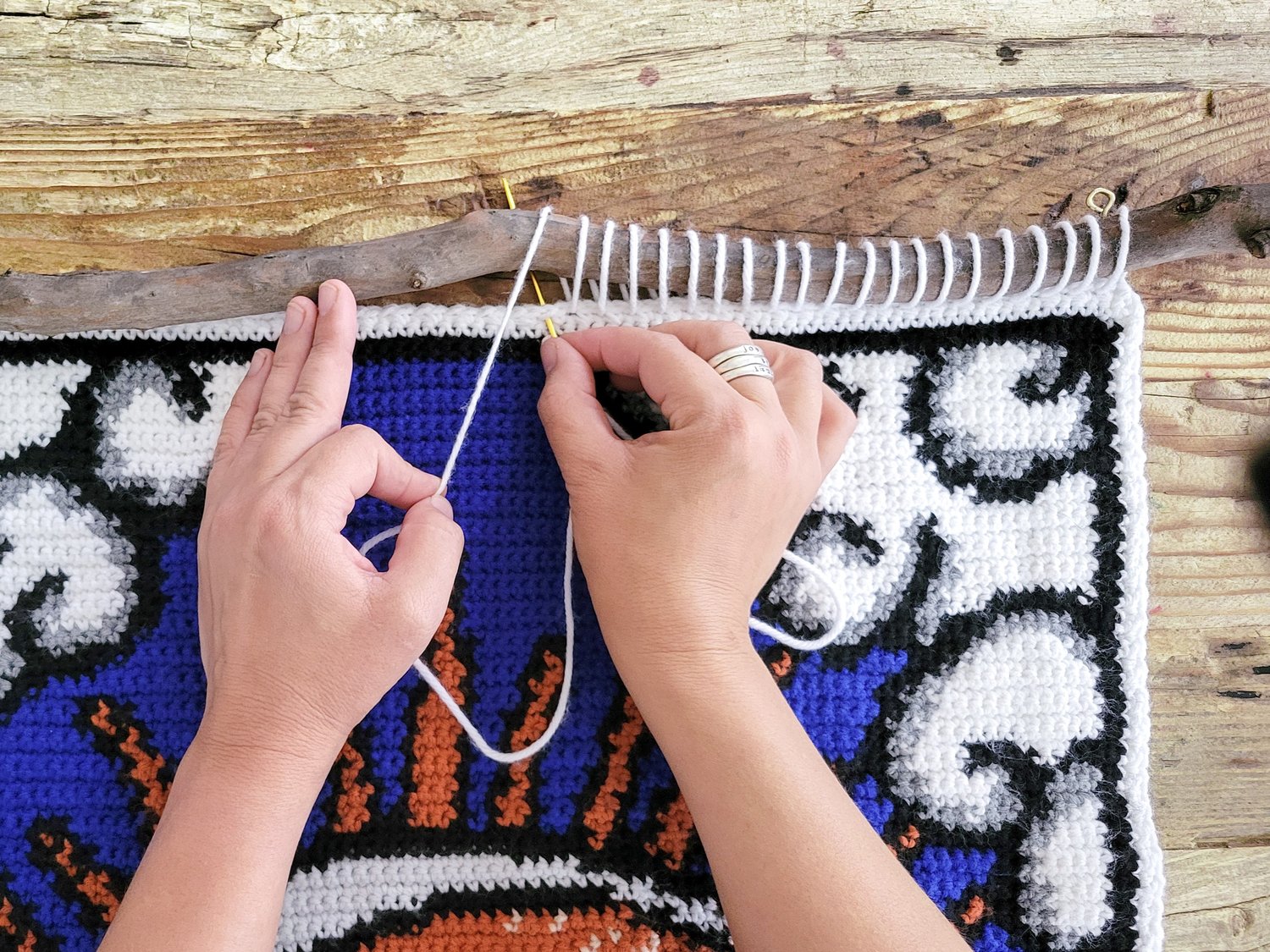 140 rows with 100 stitches per row. Finished tapestry measures approximately 21 x 27.5 inches using the suggested materials (size may vary based on yarn and hook size used).