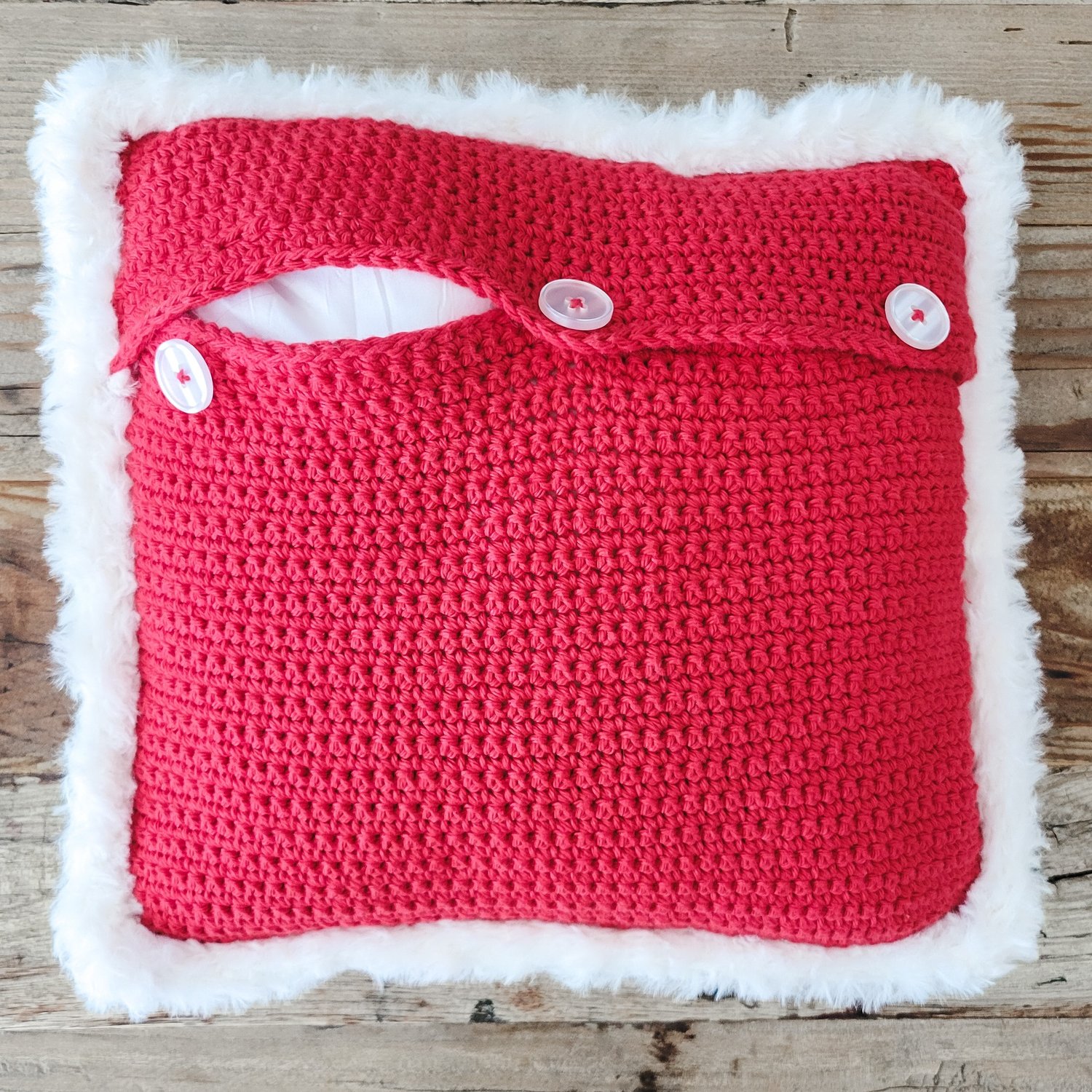 Finished pillow cover measures approximately 13 x 13 inches using the recommended materials (size may vary based on yarn and hook size used).